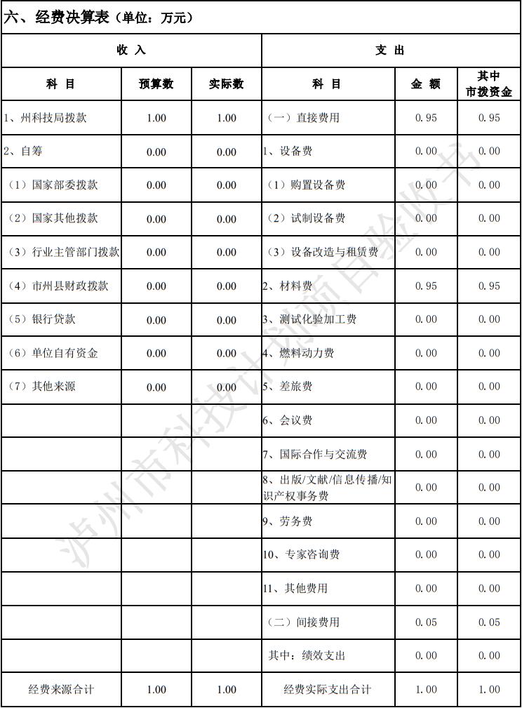 根据《泸州市科学技术和人才工作局、泸州市财政局关于开展科研项目经费“包干制”试点工作的通知》的通知要求,2020年及2021年度立项的泸州市科技计划应用基础研究、软科学、创新苗子项目将纳入经费包干制试点范围。同时在项目验收和绩效评价前,试点单位应对项目经费支出情况进行审核,并在单位内部公开项目经费决算表,接受监督。现将谭博(指导教师:杨彬彬)的苗子项目经费决算表公示如下,公示时间2023年5月5日--2023年5月8日: