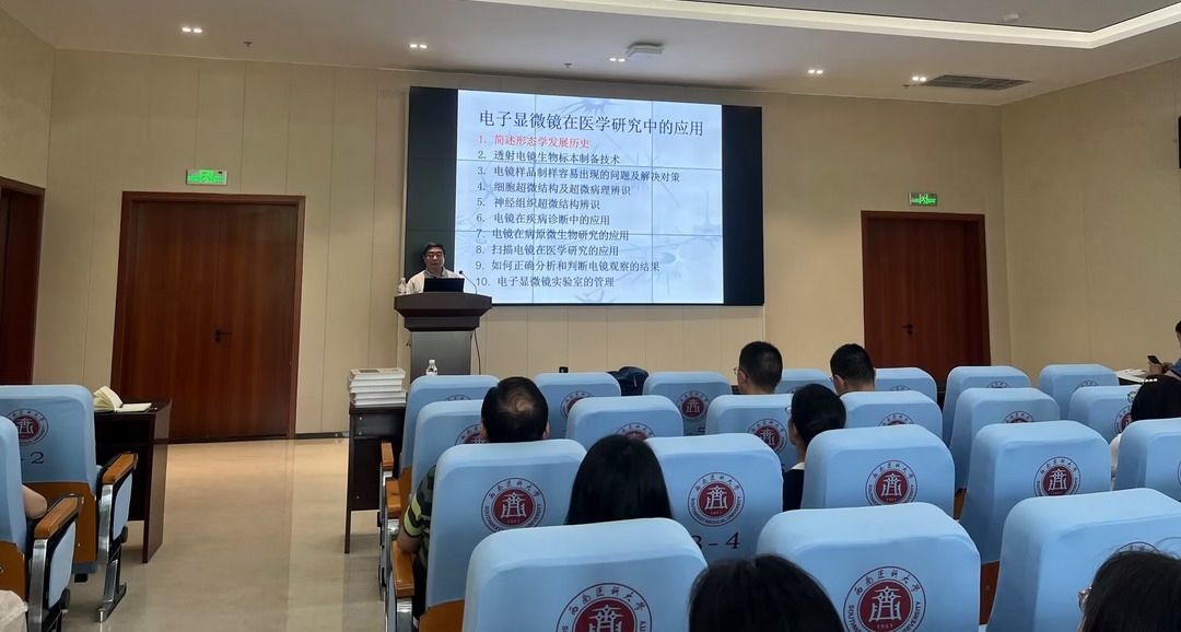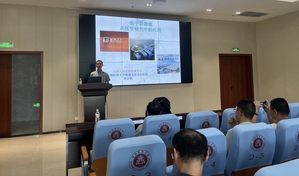 近日,学校邀请到西湖大学显微成像平台电镜专业资深顾问孙异临研究员来校作“电子显微镜在医学研究中的应用”专题学术讲座。讲座由科技处副处长许望东主持,来自公共实验技术中心、临床医学院、心血管研究所、药学院、基础医学院等部门院系师生100余人参会。