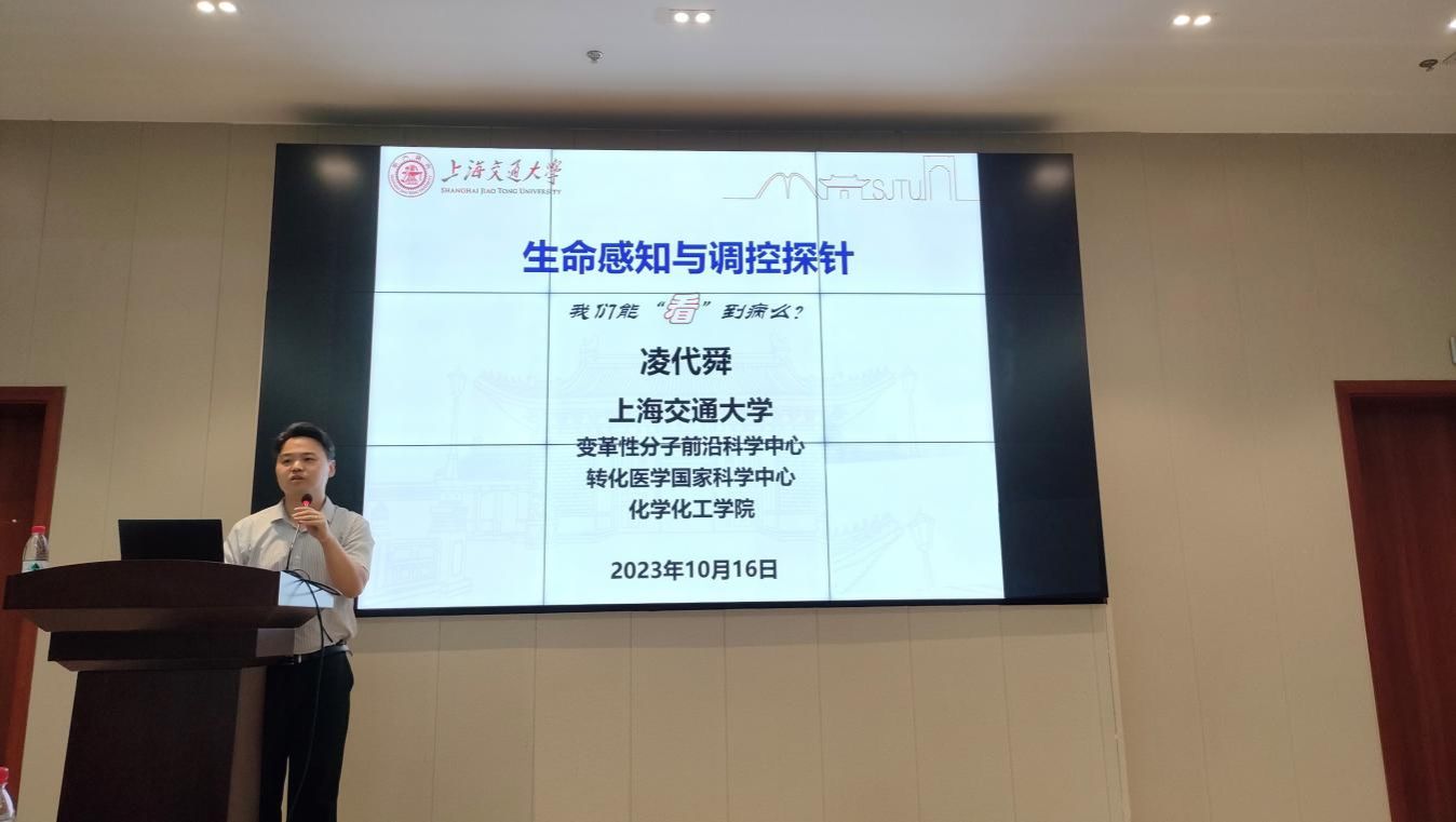 2023年10月16日上午,上海交通大学特聘教授凌代舜在城北校区科技大楼102学术报告厅为全校师生作了题为“生命感知与调控探针—‘看’到疾病”的学术讲座。讲座由科技处处长、代谢性心血管疾病医药基础研究创新中心(以下简称“创新中心”)执行主任周翔宇教授主持。创新中心全体师生及学校相关专业教师和研究生100余人参加。