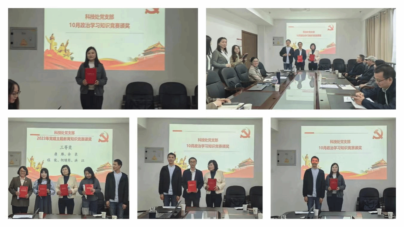 为鼓励党员同志们积极主动学习理论知识,做好模范带头作用,紧接着进行了相应的颁奖仪式,颁奖仪式分为科技处支部10月政治学习知识竞赛颁奖、科技处支部2023年党建主题教育知识竞赛颁奖、机关党委2023年“庆国庆、迎中秋”“学习强国”积分奖励颁奖。