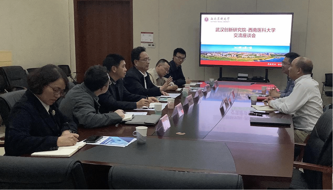 会上,田清华介绍了我校科技成果转移转化情况,肖五淀介绍了教育部代谢性心血管疾病医药基础研究创新中心,吴知才介绍了武汉创新研究院生命科学工具产业研究所以及在产学研转化方面的规划以及进展,娄阳介绍了武汉爱博泰克生物科技公司以及其主导的产学研计划。双方与会人员进行了热烈的交流。
