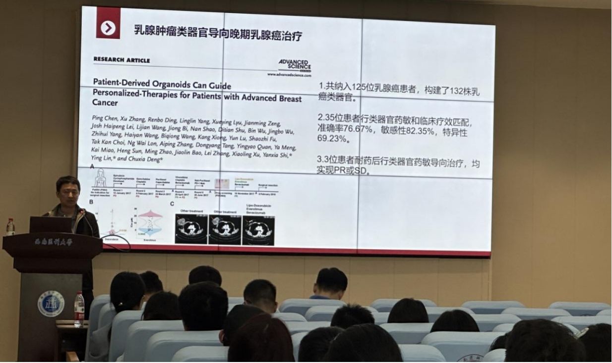 刘嘉烨副教授从基于肿瘤类器官的转化治疗特别是甲状腺癌类器官的临床转化研究着手,从维持治疗、降级治疗及新辅助治疗等层面,通过大量临床真实病例详细介绍了类器官在临床上的应用效果,并对类器官在精准治疗中的优势与尚存在的不足进行了深入剖析。申重阳副教授从新药研发的现状、类器官模型建立的迫切性、基于类器官技术的新模型开发现状及类器官相关设备的发展状况等方面展开详细讲解,全面分析了类器官在新药研发中应用的安全性与可行性。