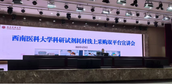为加强我校信息化建设,规范我校科研试剂耗材线上采购流程,进一步促进我校科研工作提质增效,经科技处、财务管理处、国有资产管理处等部门前期多方协调和努力,2025年4月8日,我校科研试剂耗材线上采购双平台宣讲会在第一学术报告厅举行。相关部门及参与线上采购及报销流程的职工、研究生、科研助理、本科生等参加了本次会议。会议由科技处副处长许望东主持。