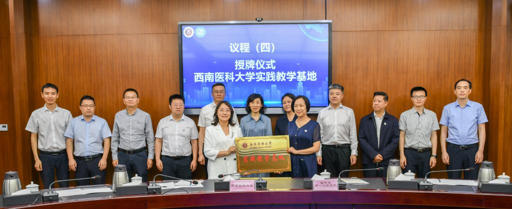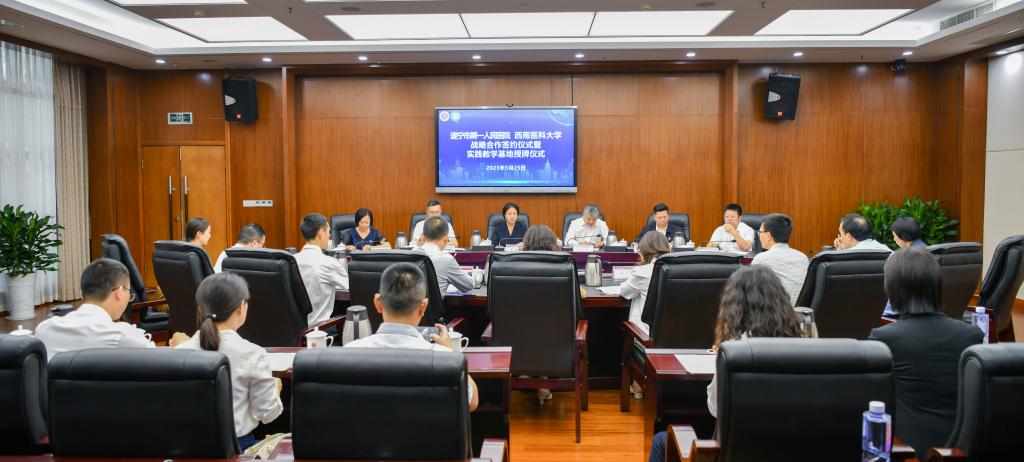 5月25日,遂宁市第一人民医院和我校举行战略合作协议续签仪式及实践教学基地授牌仪式。遂宁市副市长吴新春、市卫生健康委党组书记杨宏伟,市第一人民医院党委书记侯勇、院长陶春潮、副院长张容、黎旭,beats365官方网站党委常委、副校长何涛,科技处处长周翔宇,教务处处长郑小莉,科技处副处长许望东、董伟,附属医院综合党总支书记陈昌洪、事业发展部部长尹丽,附属中医医院副院长汪国友、呼吸内科主任敖素华等出席了签约及授牌仪式。会议由周翔宇主持。