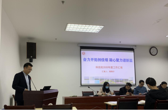 会上,科技处周翔宇从工作成效、特色亮点、工作展望等三个方面汇报了2020年科技工作开展情况,他指出,去年科技处的工作在学校党政领导的高度重视下,在全校各单位、各部门的支持下,在国家级项目、成果转化、平台建设、信息化管理、服务社会、交流合作等方面取得了较好的成绩。