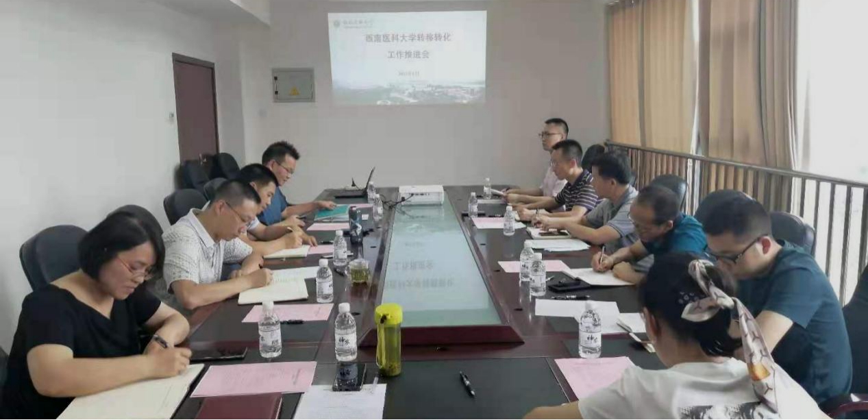 为加强“政、产、学、研、用”协同创新发展,进一步促进科技成果转移转化,服务地方经济社会高质量发展,2021年6月30日,科技处组织召开2021年转移转化工作推进会,beats365官方网站科技处处长周翔宇、副处长万居易、大学科技园管理办公室主任田清华、泸县经济信息科技局副局长刁宪彬、泸州医药产业园区服务中心主任周伟、泸州医药产业园区投资有限公司副总经理杨绍生等参加会议,会议由周翔宇主持。