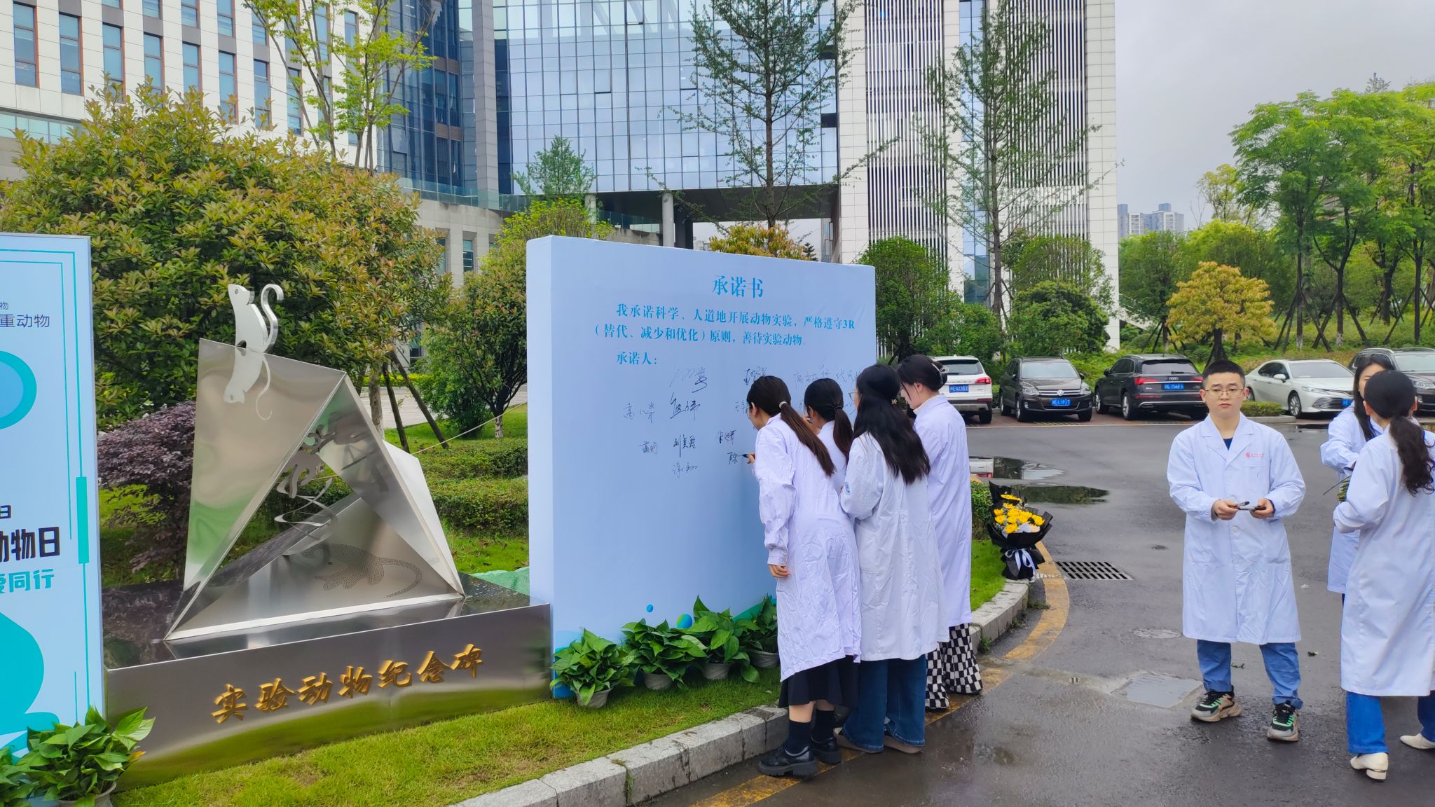 首先,全体与会人员在签名墙上签名承诺,将科学、人道地开展动物实验,严格遵守3R原则,善待实验动物。