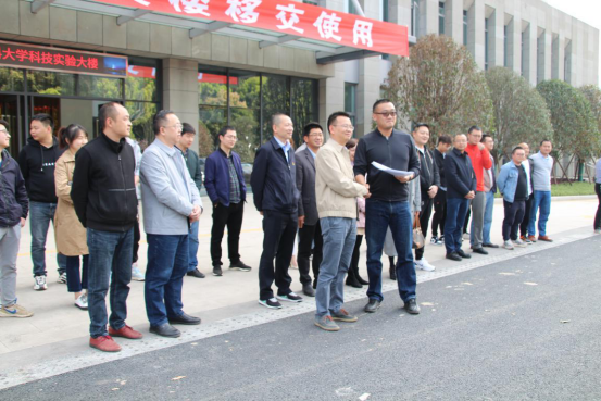 3月24日下午15:00,科技大楼交接仪式在我校科技大楼前举行。基建后勤处、科技处、保卫处、资产经营总公司、大学科技园、信息与教育技术教育中心、中电建集团公司,泸州市监管二中心、蔺波项目投资管理公司等项目部门负责人出席了移交仪式。