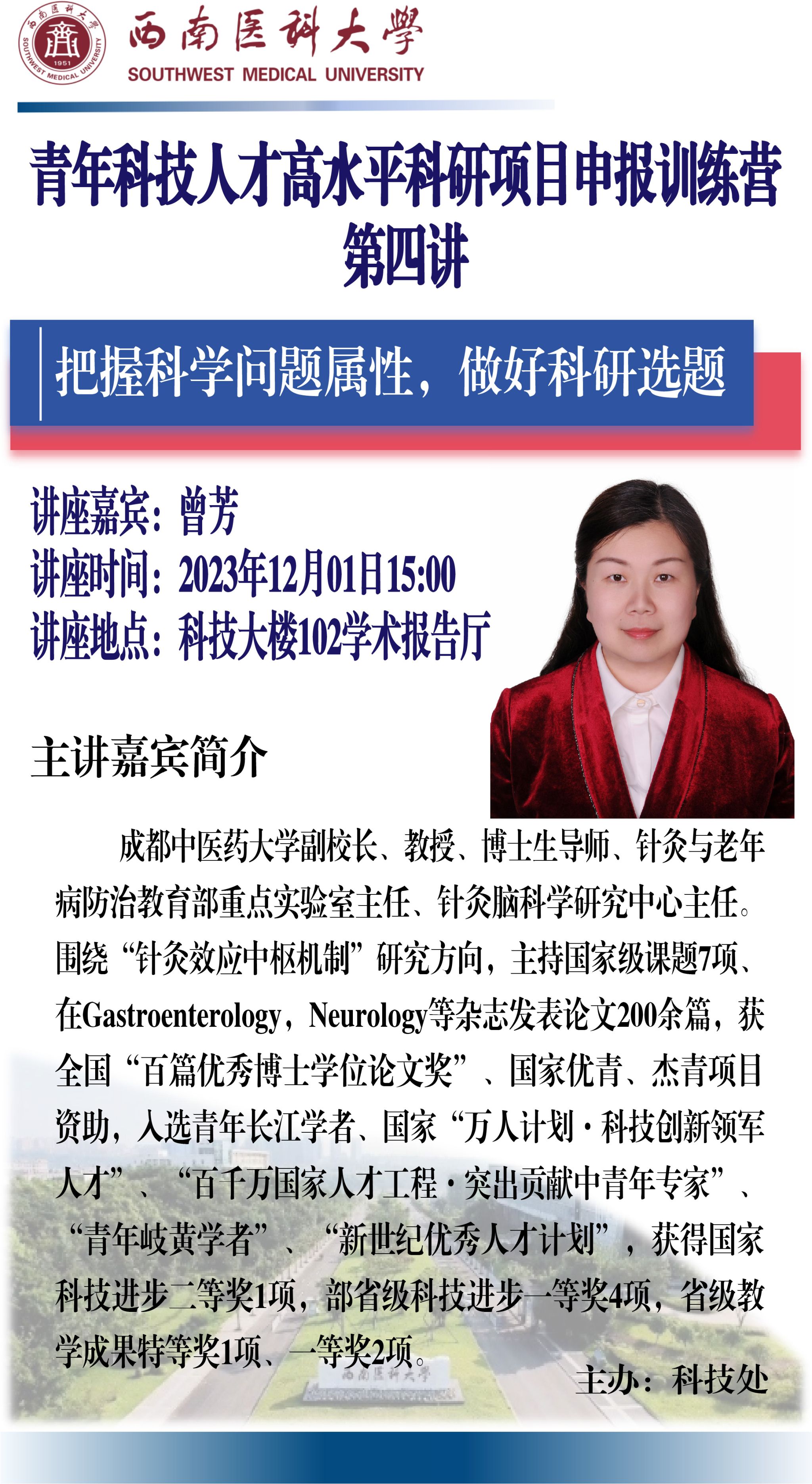 下一条:“青年科技人才高水平科研项目申报训练营”系列讲座(第三讲):The orphan GPR123 expressed specifically in excitatory neurons of hypothalamic VMH/DMH nucleus regulates food intake and blood glucose
