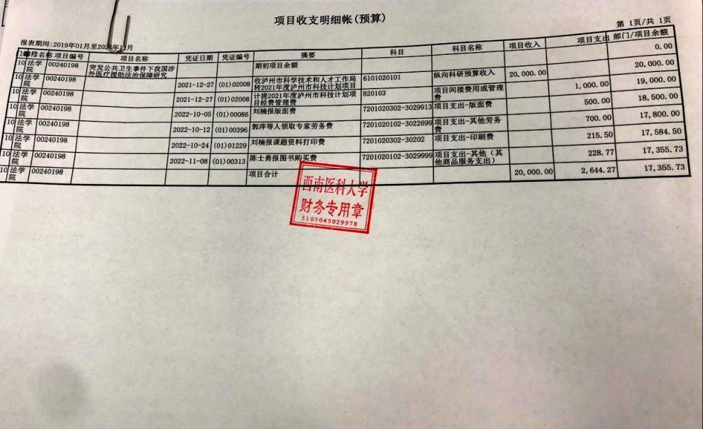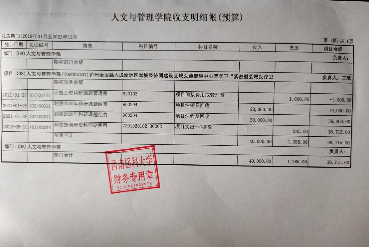 根据泸州市科学技术和人才局、泸州市财政局关于科研项目经费“包干制”试点工作的通知(泸市科人[2021]55号)文件的精神,现将两个项目的经费使用情况予以公示,公示期为2023年4月13日-2023年4月19日。如有异议可联系科技处:代凤玲、李平瑞,联系电话:0830-3161837。